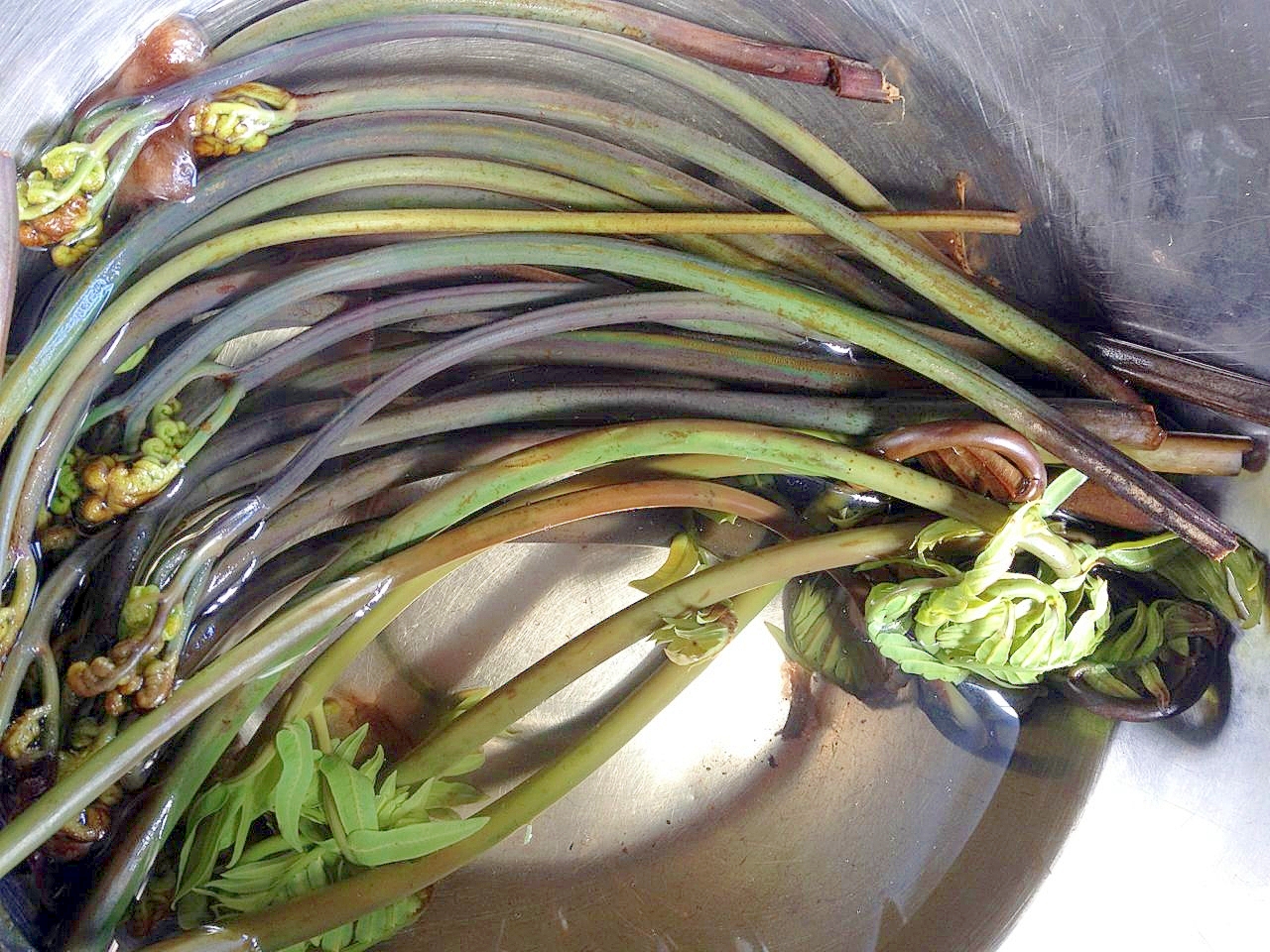 初物はウド ワラビ ゼンマイと チックの道草 きのこ